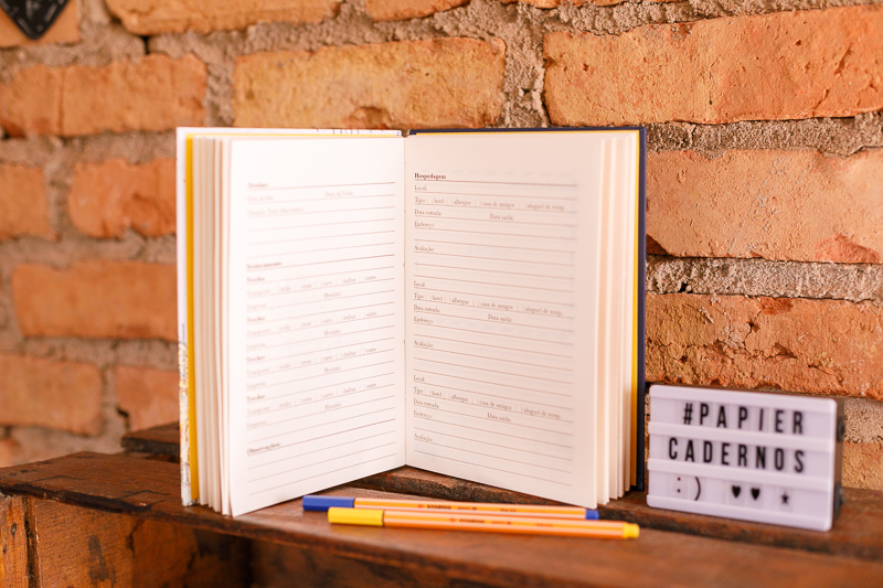 Miolo impresso com informações de viagem para você escrever e colocar fotos de sua vigem;